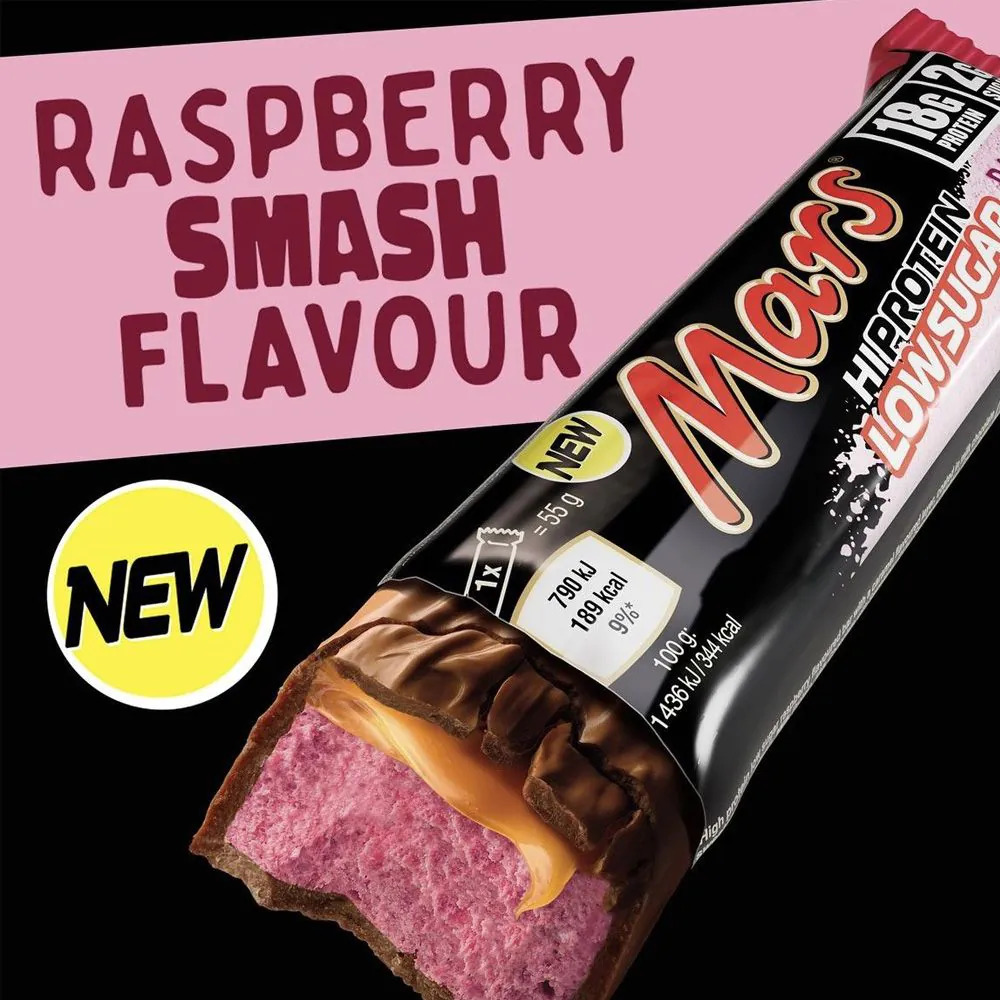 Esplora il gusto irresistibile della nuova MARS LOW SUGAR HI PROTEIN RUSPBERRY SMASH 55G di MARS PROTEIN che unisce la intramontabile bontà di Mars con una deliziosa esplosione di lampone.