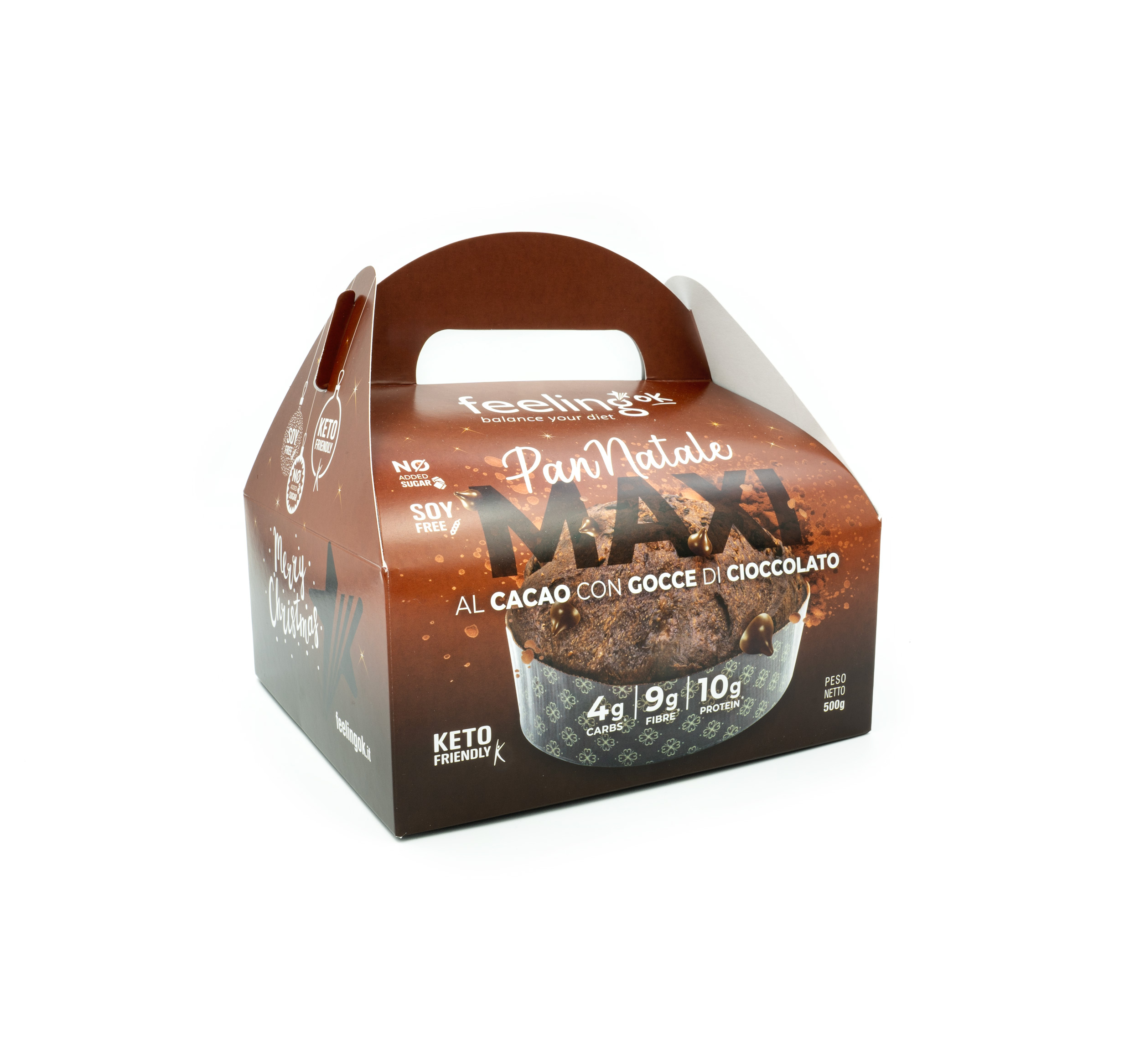 PAN NATALE MAXI AL CACAO 500G di FEELING OK è un delezioso panettone Proteico e Keto Friendly, ideale se vuoi goderti tutto il classico gusto del panettoe ma rimanendo in forma.